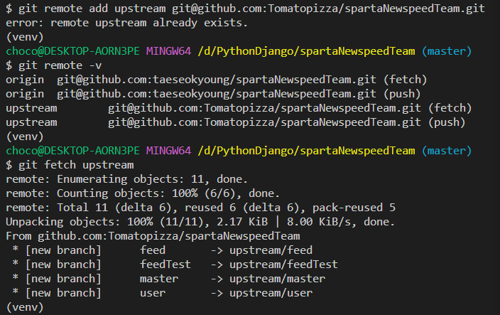 💻 블로그를 찾아보니 upstream 을 하면 된다고 하여 시작된 시행착오.
